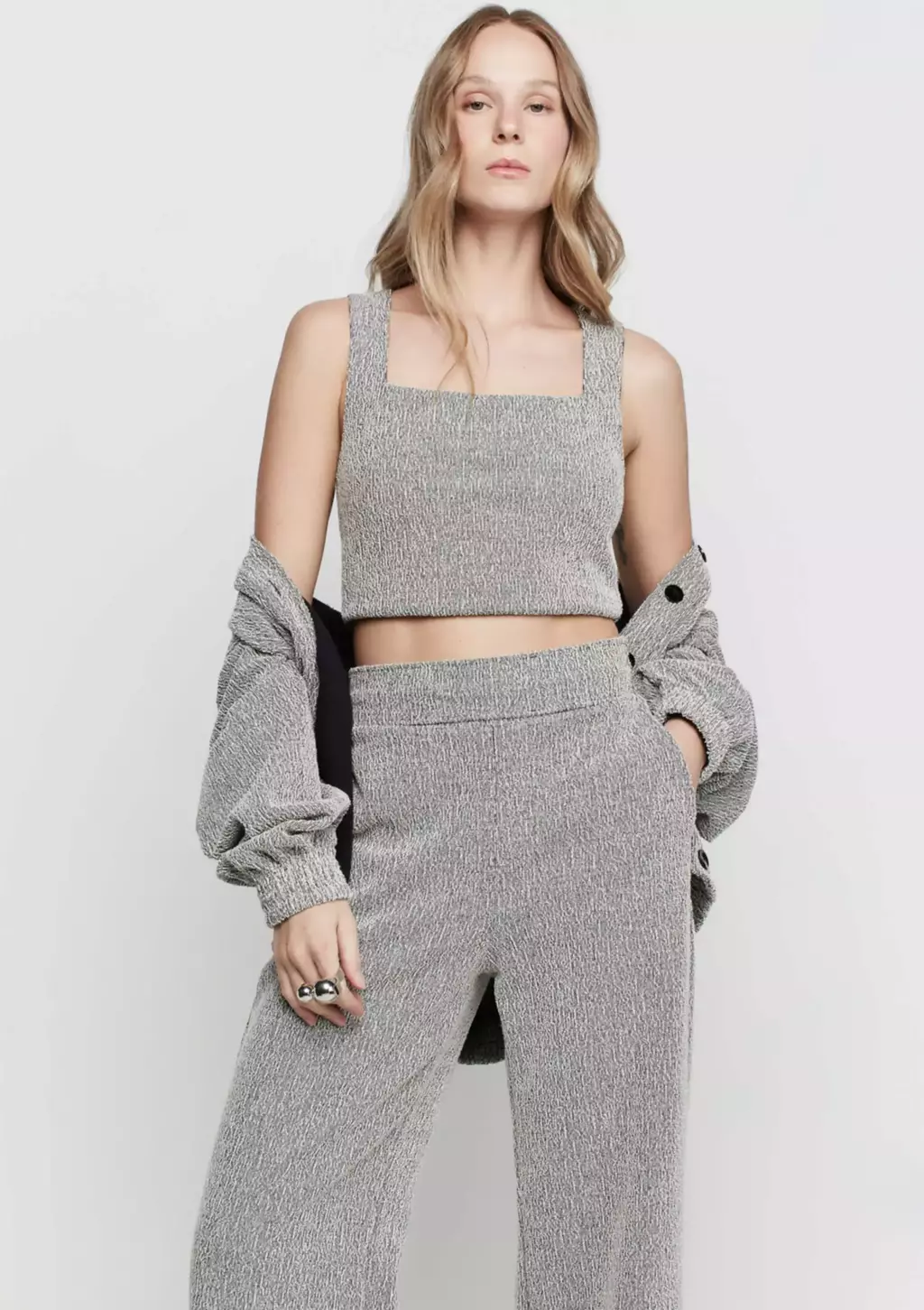 O top cropped texturizado com alças médias é a definição de sofisticação e modernidade. Com sua textura envolvente e as alças largas que garantem conforto, esta peça destaca-se como uma escolha marcante para mulheres que buscam um visual contemporâneo!